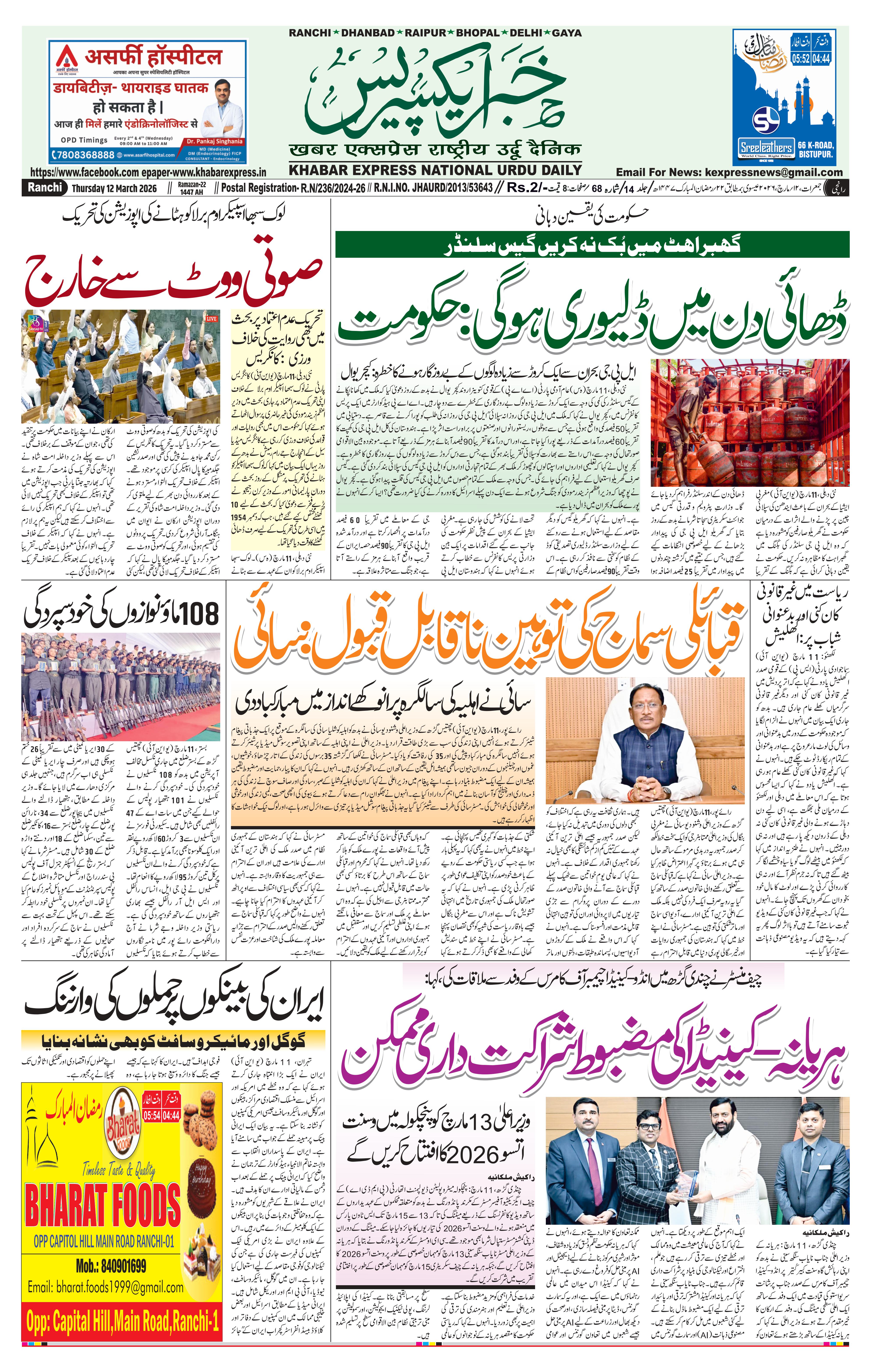 Wed, 11 Mar 2026स्वास्थ्य मंत्री इरफान अंसारी ने झारखंड विधानसभा में स्वास्थ्य सेवाओं के विस्तार की घोषणा की। रिम्स-2 एशिया का सबसे बड़ा अस्पताल बनेगा, जिसका निर्माण इसी साल शुरू होगा, कुल 4000 बेड होंगे। राज्य में 8 नए मेडिकल कॉलेज, 25 हाई-टेक ट्रामा सेंटर और 750 अबुआ मेडिकल स्टोर खुलेंगे। Jharkhand Top News