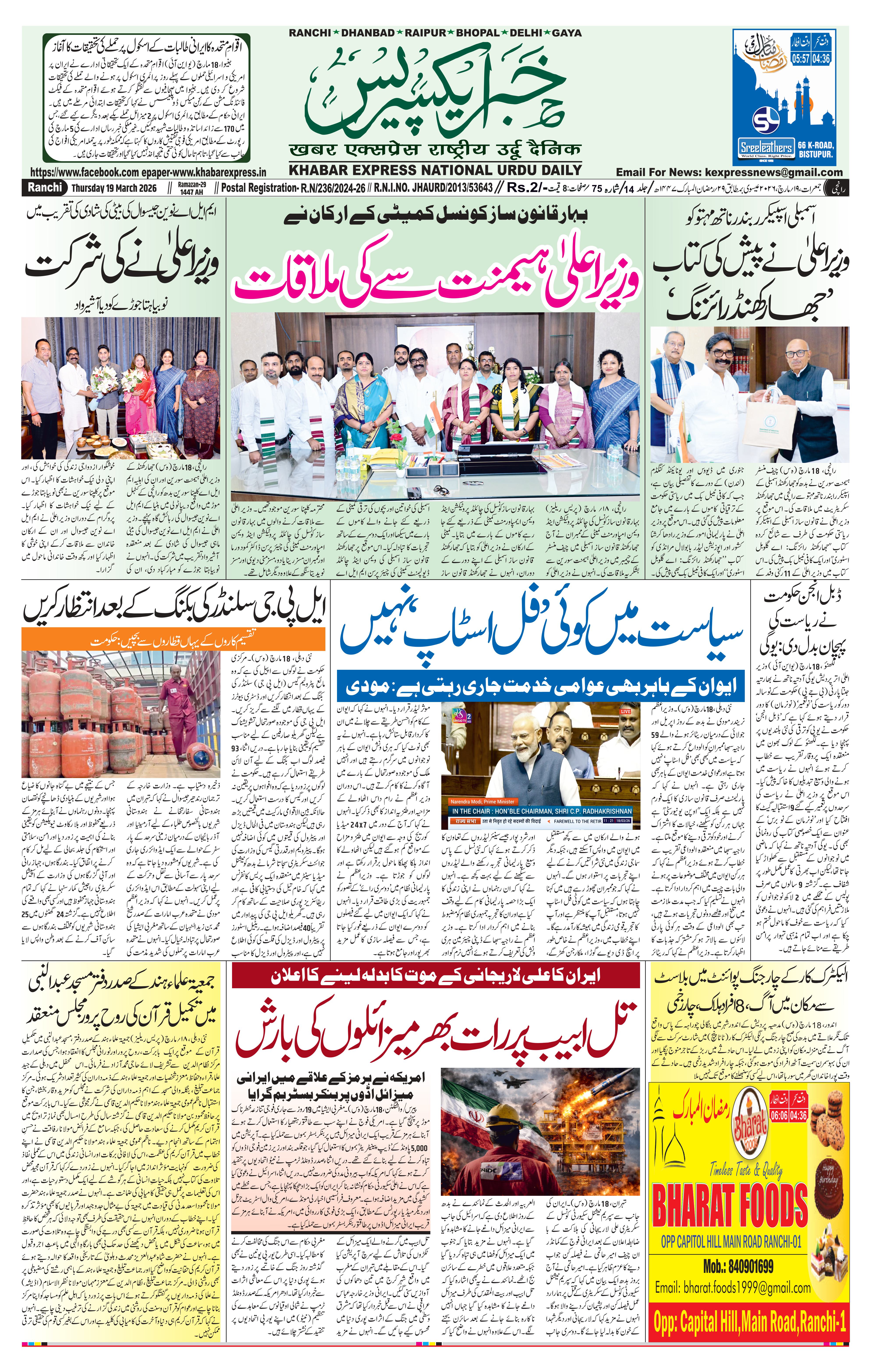 Thu, 19 Mar 2026मुख्यमंत्री हेमंत सोरेन ने आगामी ईद, सरहुल और रामनवमी त्योहारों के मद्देनजर सभी जिलों के डीसी, एसएसपी और एसपी के साथ उच्च स्तरीय बैठक की। उन्होंने शांतिपूर्ण आयोजन सुनिश्चित करने के लिए कड़े निर्देश दिए। Jharkhand Top News